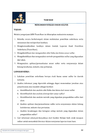 1. Lakukan penelitian sederhana berupa studi kasus unsur sulfur ke daerah