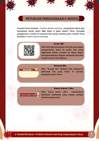 penggunaan e-modul ini memuat fitur yang tersedia pada e-modul Virus