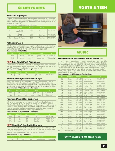 Spread the love with this creative bracelet making class! Kids will design and Tue 10 sess. 1/13-3/31 4:30pm-5pm YO0703 22W