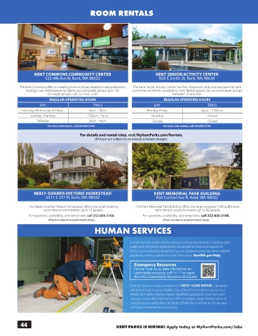 44 KENT PARKS IS HIRING! Apply today at MyKentParks.com/Jobs