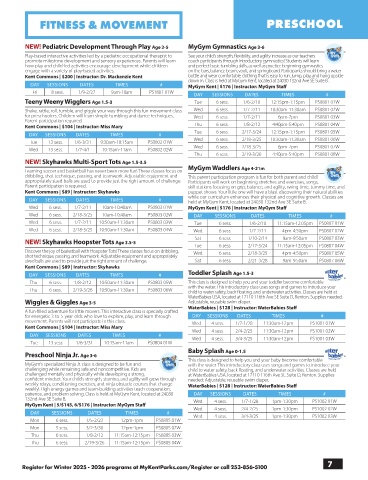movement. Parents will not participate in this class. Wed 4 sess. 1/7-1/28 11:30am-12pm PS1001 01W