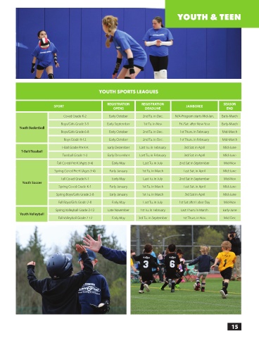 Fall Boys/Girls Grade 2-8 Early May Last Tu. in July 1st Sat after Labor Day Mid-Nov