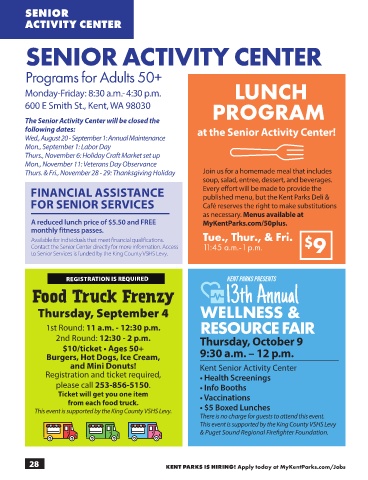 28                                           KENT PARKS IS HIRING! Apply today at MyKentParks.com/Jobs