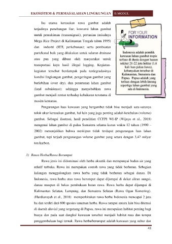 (Hardiansyah et al., 2018) memperkirakan rawa herba Indonesia mencapai 2 juta