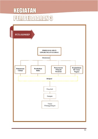 EKOSISTEM & PERMASALAHAN LINGKUNGAN E-MODUL PETA KONSEP PERMASALAHAN LINGKUNGAN GLOBAL Diantaranya Pencemaran Perpindahan Pemanasan Perubahan Wilayah Global Iklim B3 Antar Perairan Negara Meliputi Penyebab Dampak Upaya Penanggulangan 54