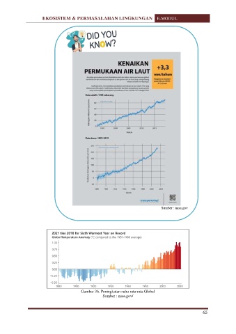 EKOSISTEM & PERMASALAHAN LINGKUNGAN E-MODUL Sumber : nasa.gov Gambar 36. Peningkatan suhu rata-rata Global Sumber : nasa.gov/ 65