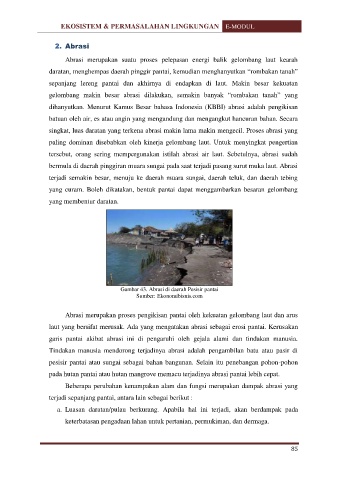 laut yang bersifat merusak. Ada yang mengatakan abrasi sebagai erosi pantai. Kerusakan
