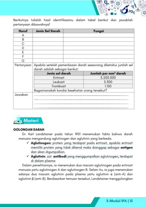 Pertanyaan Apabila setelah pemeriksaan darah seseorang diketahui jumlah sel