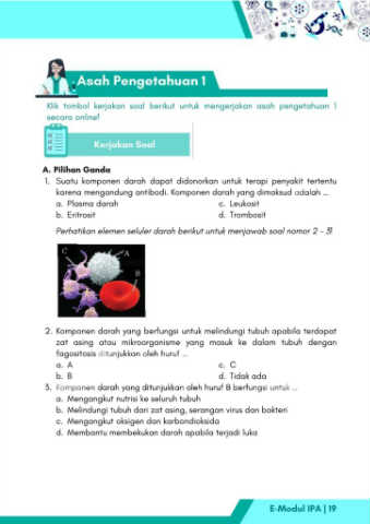 2. Komponen darah yang berfungsi untuk melindungi tubuh apabila terdapat