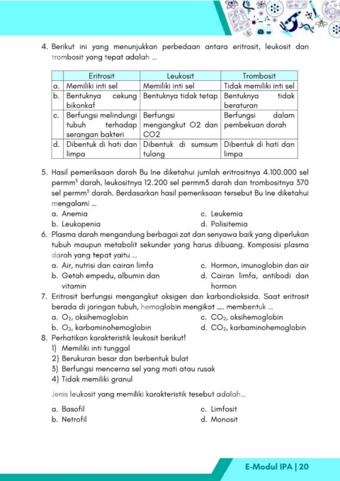 5. Hasil pemeriksaan darah Bu Ine diketahui jumlah eritrositnya 4.100.000 sel