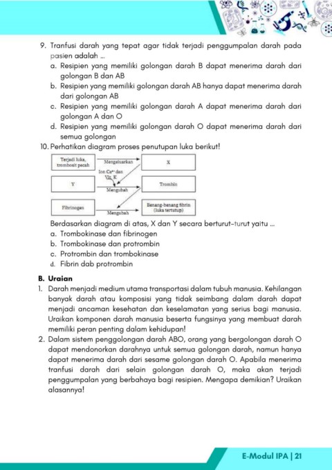 9. Tranfusi darah yang tepat agar tidak terjadi penggumpalan darah pada
