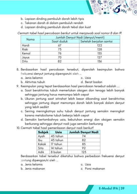 10. Cermati tabel hasil pemeriksaan denyut nadi berikut!