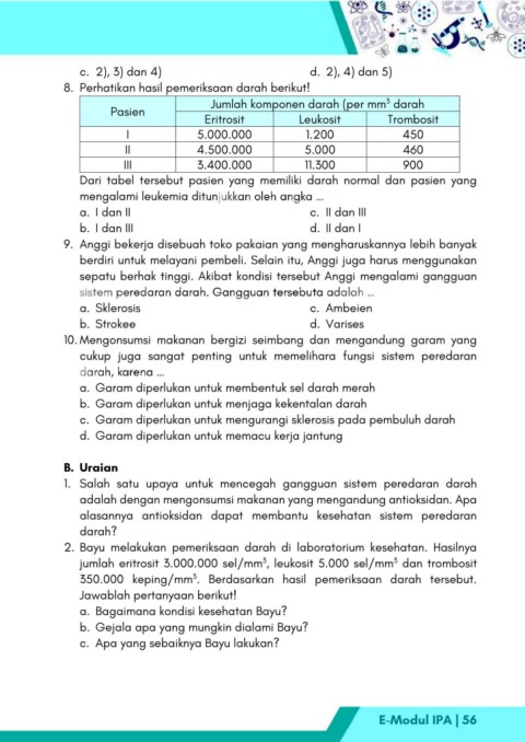 8. Perhatikan hasil pemeriksaan darah berikut!