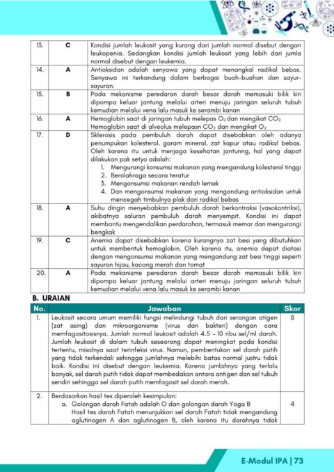 19. C Anemia dapat disebabkan karena kurangnya zat besi yang dibutuhkan