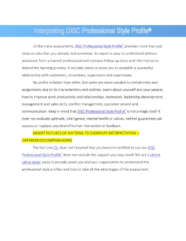 communication. Keep in mind that DISC Professional Style Profile is not a magic tool! It