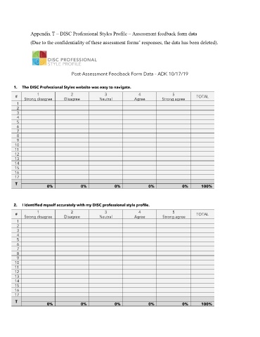 Appendix T – DISC Professional Styles Profile – Assessment feedback form data
