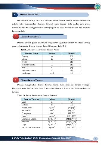 persegi. Satuan dan dimensi besaran dapat dilihat pada Tabel 2.5.