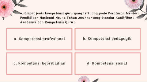 4. Empat jenis kompetensi guru yang tertuang pada Peraturan Menteri