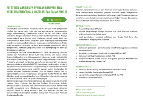 26 - 30 AGUSTUS Penilaian Keselamatan Berkala Instalasi dan Bahan Nuklir.