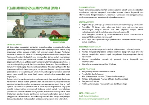 PELATIHAN UJI KESESUAIAN PESAWAT SINAR-X TUJUAN PELATIHAN