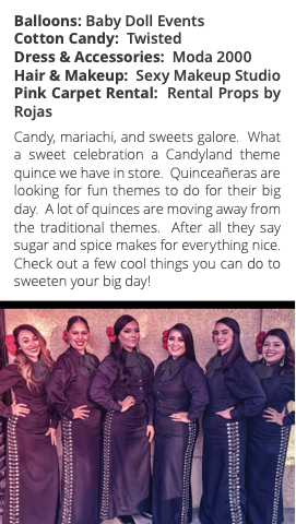 Candy, mariachi, and sweets galore. What a sweet celebration a Candyland theme quince we have in store. QuinceaƱeras are looking for fun themes to do for their big day. A lot of quinces are moving away from the traditional themes. After all they say sugar and spice makes for everything nice. Check out a few cool things you can do to sweeten your big day!