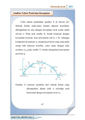 elevasi α. Pada arah sumbu X, benda bergerak dengan