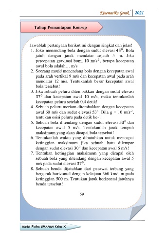 1. Joko menendang bola dengan sudut elevasi 45 . Bola