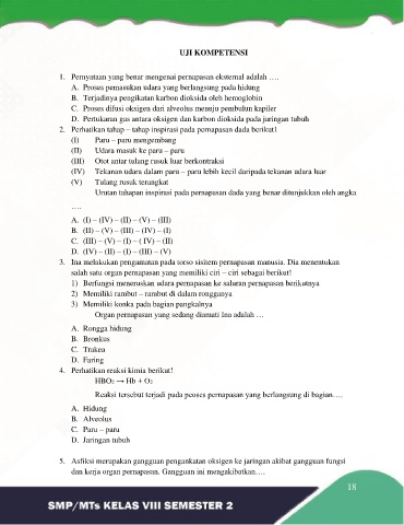 1. Pernyataan yang benar mengenai pernapasan eksternal adalah ….