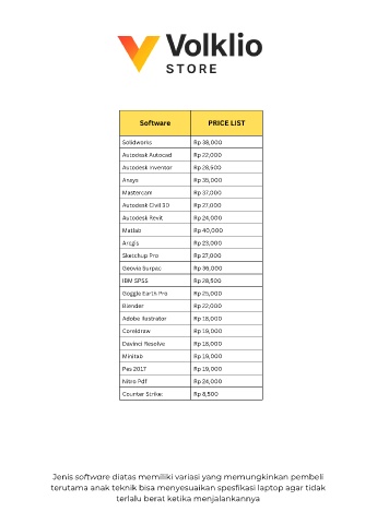 Jenis software diatas memiliki variasi yang memungkinkan pembeli