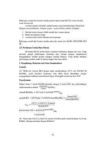Beberapa contoh dari larutan standar primer antara lain Na2CO3, asam oksalat,