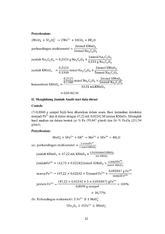 (b). Perbandingan stoikiometri: 5 Fe 2+ ≡ 1 MnO