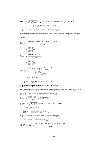 Penambahan asam akan menghasilkan buffer dengan komposisi sebagai