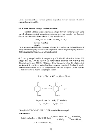 Untuk menentukan kelebihan bromine, ditambahkan kalium jodida berlebih untuk