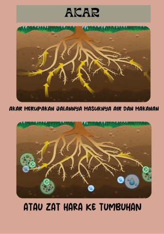 AKAR AKAR MERUPAKAN JALANNYA MASUKNYA AIR DAN MAKANAN ATAU ZAT HARA KE TUMBUHAN