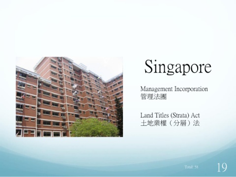 Singapore Management Incorporation 管理法團 Land Titles (Strata) Act 土地業權(分層)法 19 Total: 58