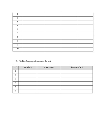 1 2 3 4 5 6 7 8 9 10 B. Find the languages features of the text. NO TENSES PATTERN SENTENCES 1 2 3 4 5 6