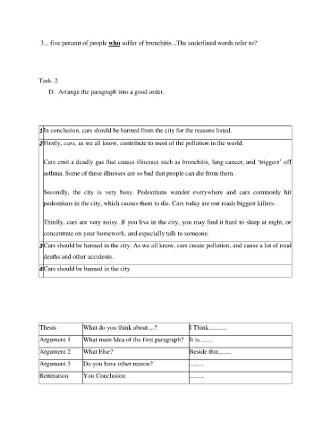 3 Cars should be banned in the city. As we all know, cars create pollution, and cause a lot of road