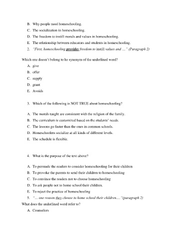 2. “First, homeschooling provides freedom to instill values and ....” (Paragraph 2)