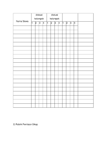 diskusi diskusi kelompok kelompok Nama Siswa 1 2 3 4 1 2 3 4 1 2 3 4 2) Rubrik Penilaian Sikap
