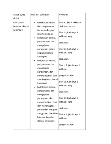 Aktif dalam Melakukan diskusi Skor 4 : jika 4 indikator