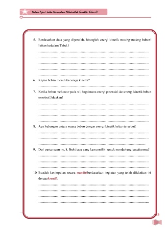 5. Berdasarkan data yang diperoleh, hitunglah energi kinetik masing-masing beban!