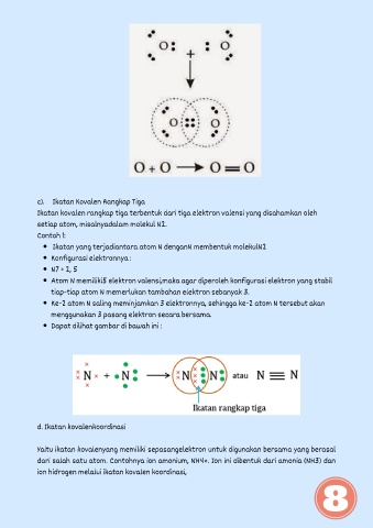 Ke-2 atom N saling meminjamkan 3 elektronnya, sehingga ke-2 atom N tersebut akan