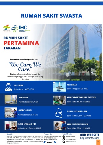 Rumah Sakit Pertamina Tarakan merupakan salah satu dari 14 rumahsakit PT. Telp : 0551-31403, 31665 I 08115416560 @rspertaminatarakan