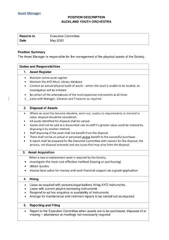 The Asset Manager is responsible for the management of the physical assets of the Society.