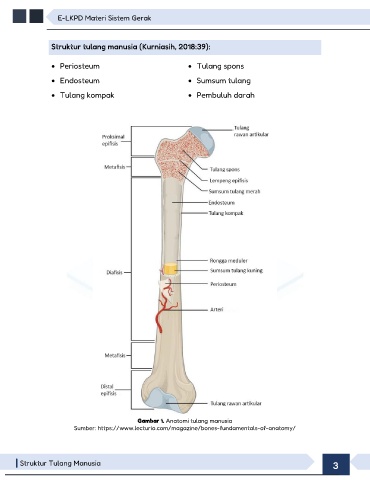 Struktur tulang manusia (Kurniasih, 2018:39):