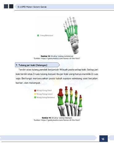 Terdiri atas tulang pendek berjumlah 14 buah pada setiap kaki. Setiap jari