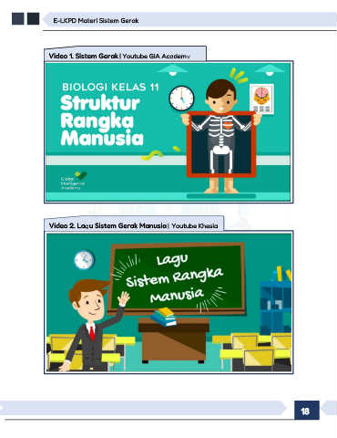 E-LKPD Materi Sistem Gerak Video 1. Sistem Gerak | Youtube GIA Academy Video 2. Lagu Sistem Gerak Manusia | Youtube Khesia Halim 18
