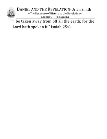 DANIEL AND THE REVELATION-Uriah Smith ~The Response of History to the Revelation~ Chapter 7 – The Sealing be taken away from off all the earth; for the Lord hath spoken it.” Isaiah 25:8.