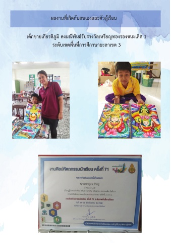 ผลงานที่เกิดกับตนเองและตัวผู้เรียน เด็กชายเกียรติภูมิ คงมณีพันธ์รับรางวัลเหรียญทองรองชนะเลิศ 1 ระดับเขตพื้นที่การศึกาษายะลาเขต 3