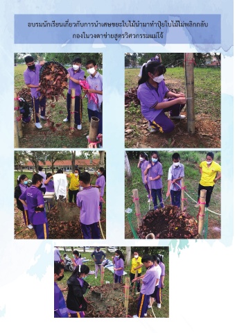 อบรมนักเรียนเกี่ยวกับการนำาเศษขยะใบไม้นำามาทำาปุ๋ยใบไม้ไม่พลิกกลับ กองในวงตาข่ายสูตรวิศวกรรมแม่โจ้